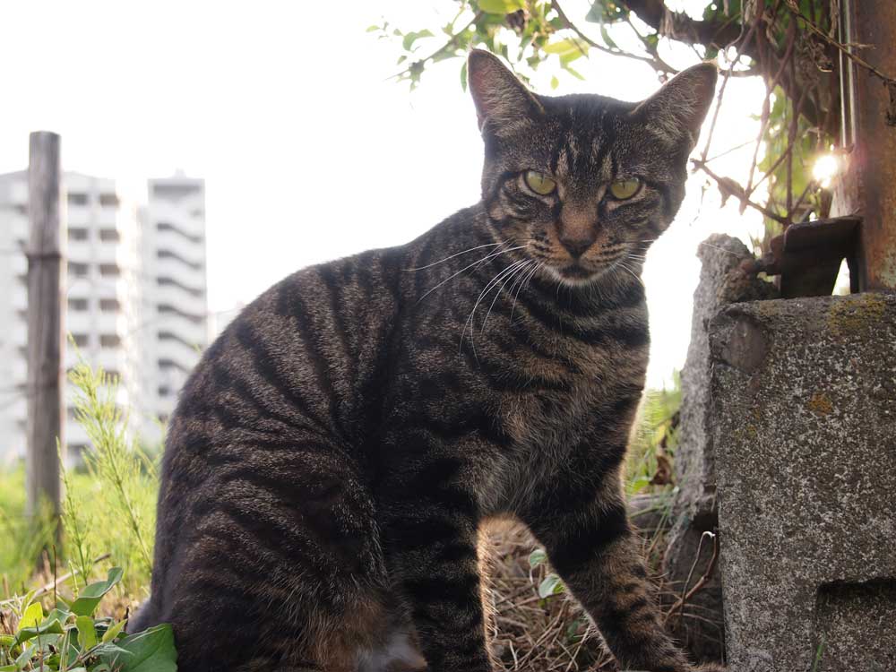 「誰か来たニャン、なんか見てるニャン」