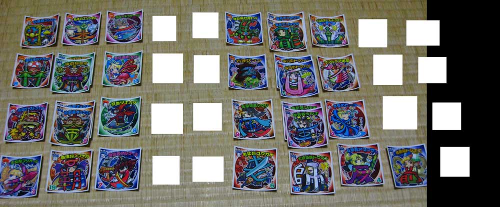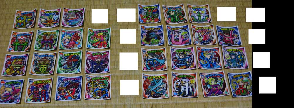 白く抜けている部分8枚はA郡で封入率が極めて高いシール